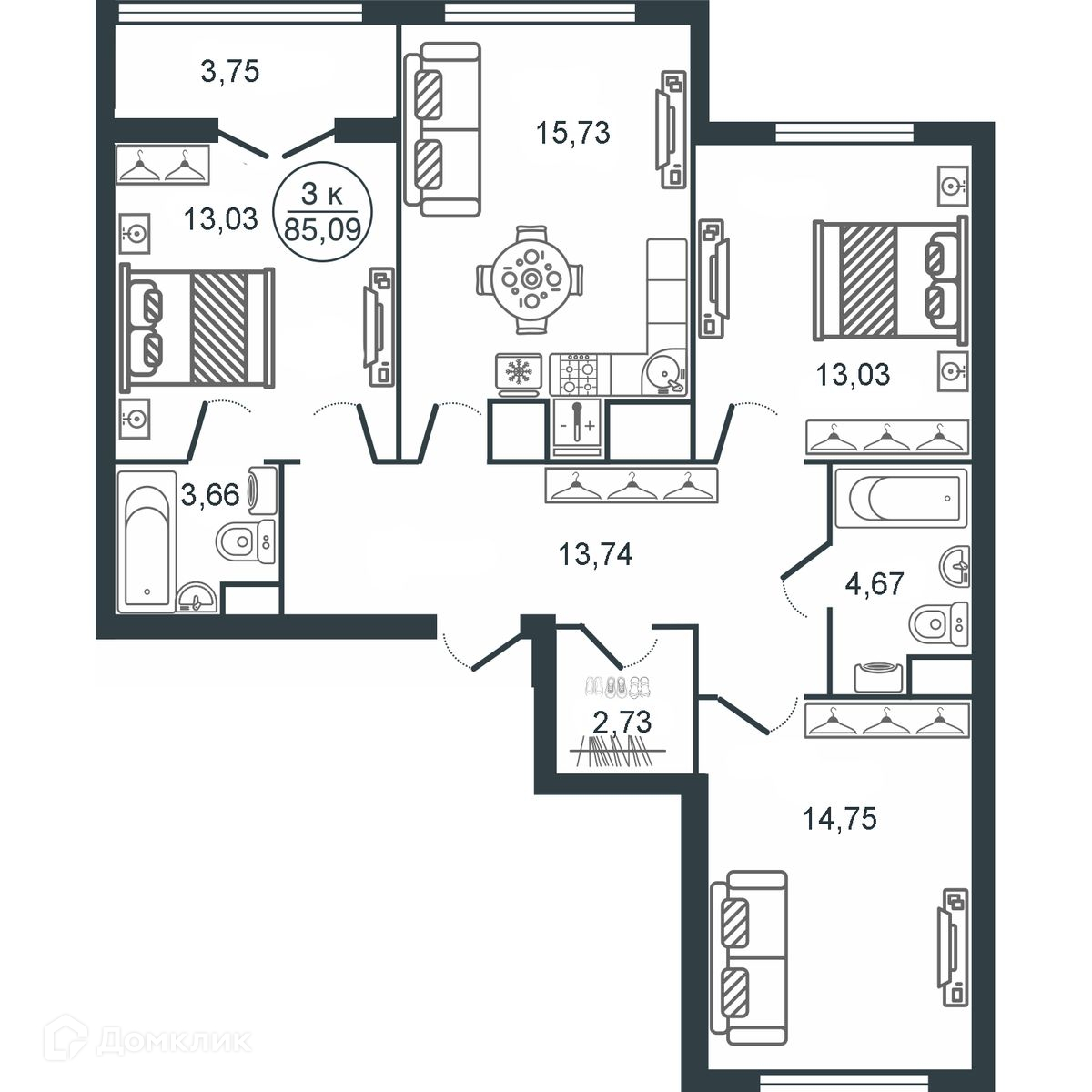 Площади квартир