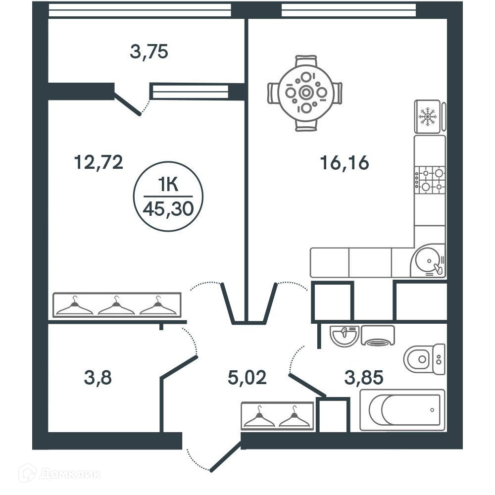 - ✅ Кухня: 16.16 м² — идеальна для семейных ужинов.