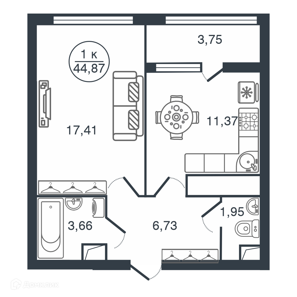 - ✅ Просторная жилая площадь: 17.41 м².