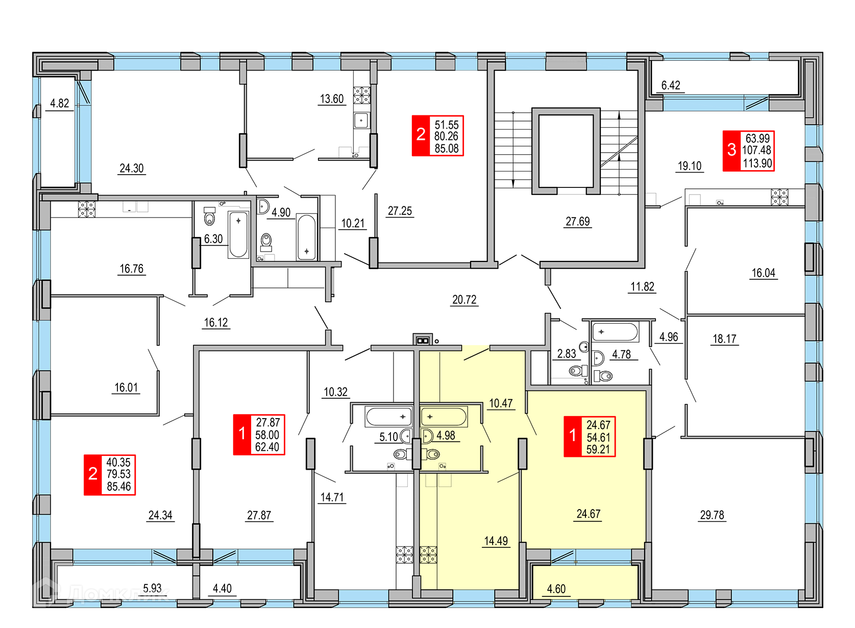 Площади квартир