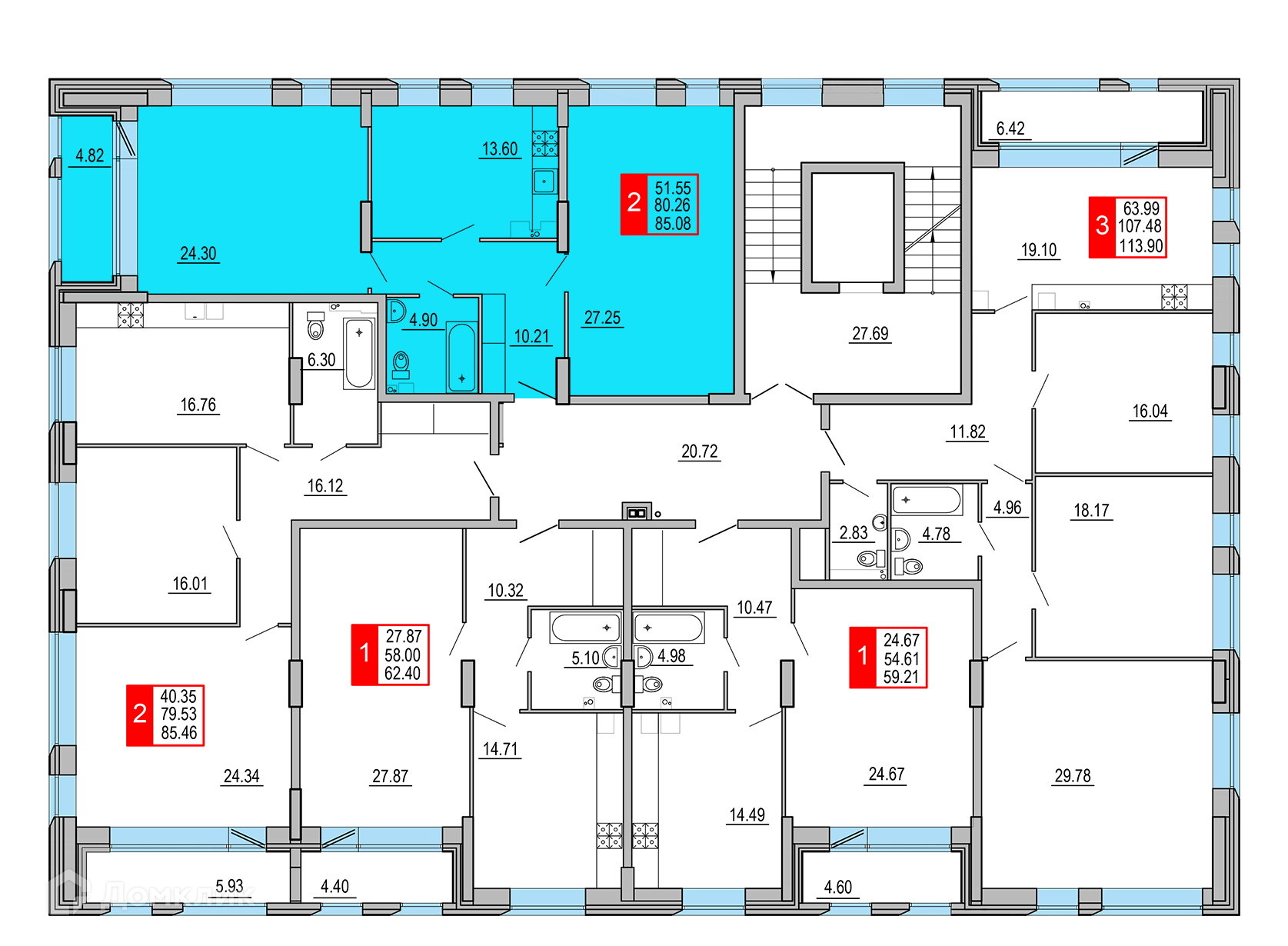 Площади квартир