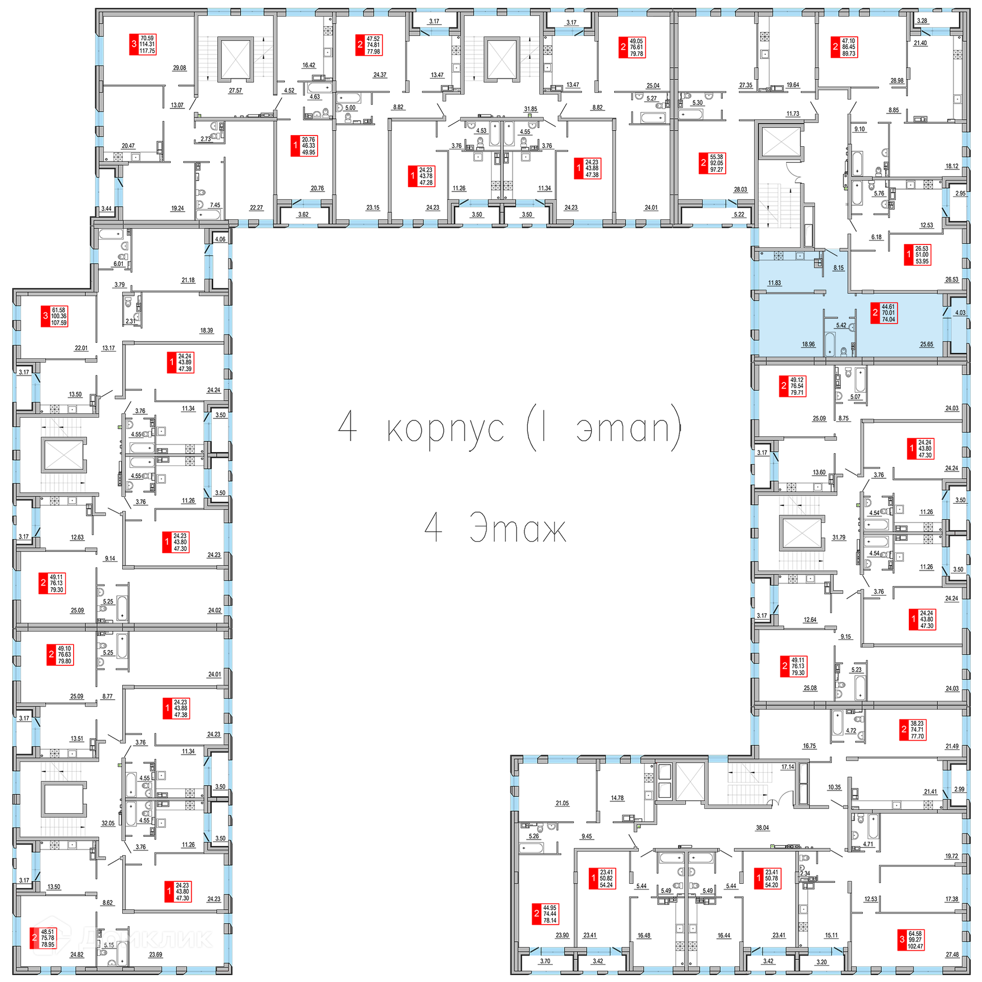Площади квартир