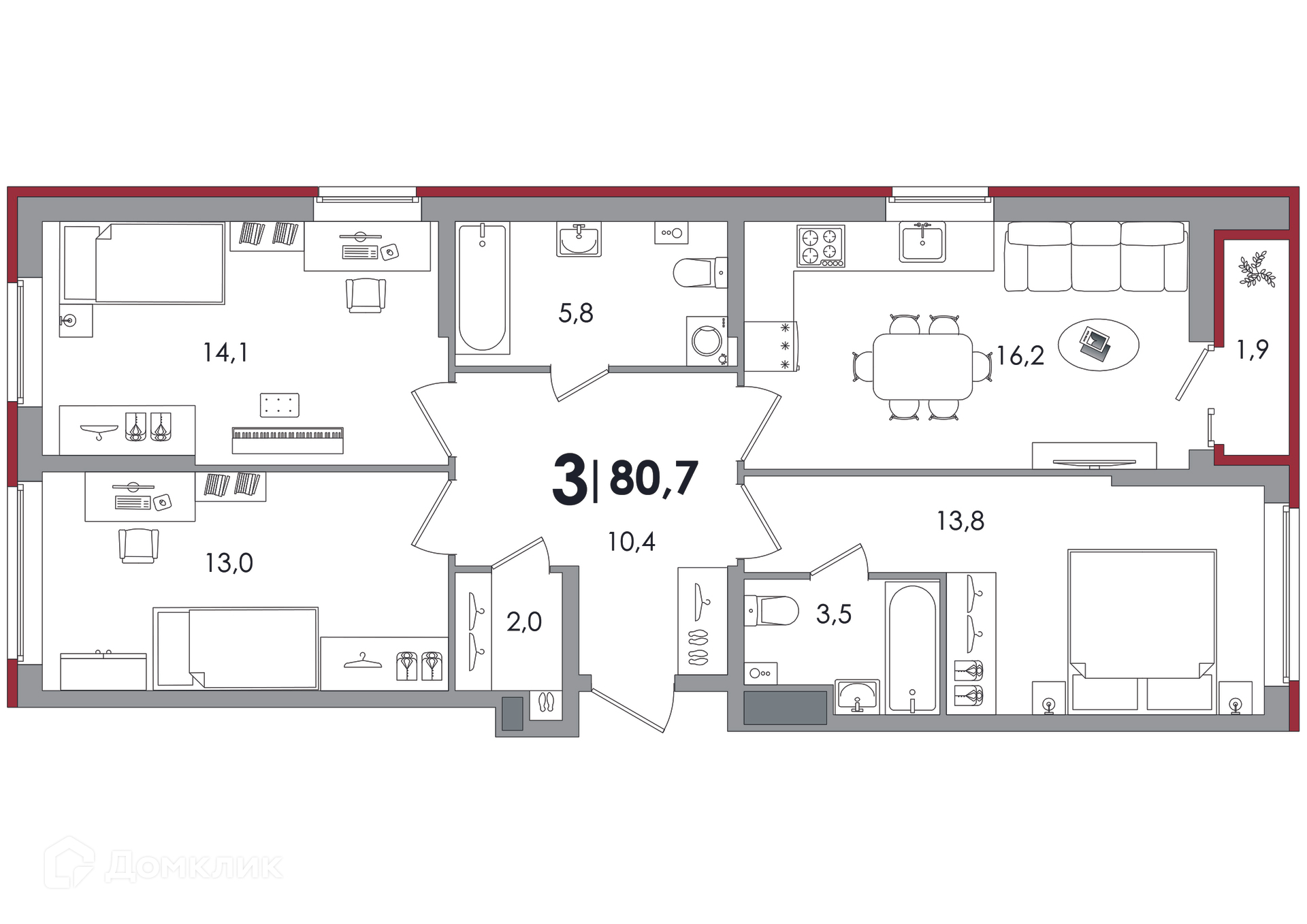 Площади квартир
