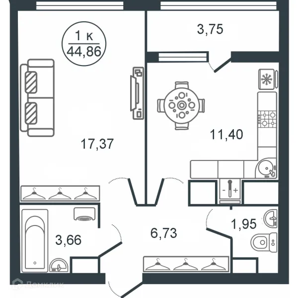 1 комн. квартира в Твери в ипотеку от 49 966 руб/месяц