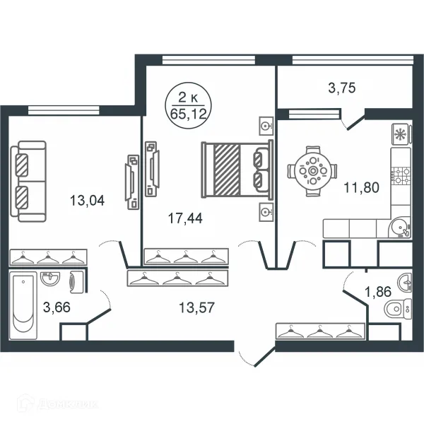 2 комн. квартира в Твери в ипотеку от 65 998 руб/месяц