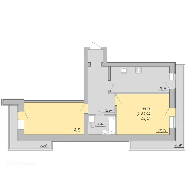 2 комн. квартира в Твери в ипотеку от 69 100 руб/месяц
