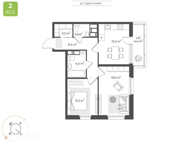 2 комн. квартира в Твери в ипотеку от 44 744 руб/месяц
