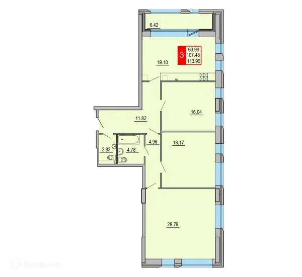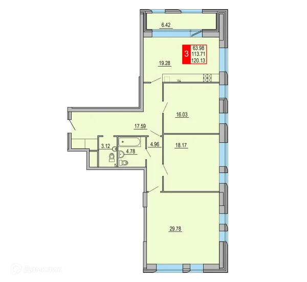 3 комн. квартира в Твери в ипотеку от 78 720 руб/месяц
