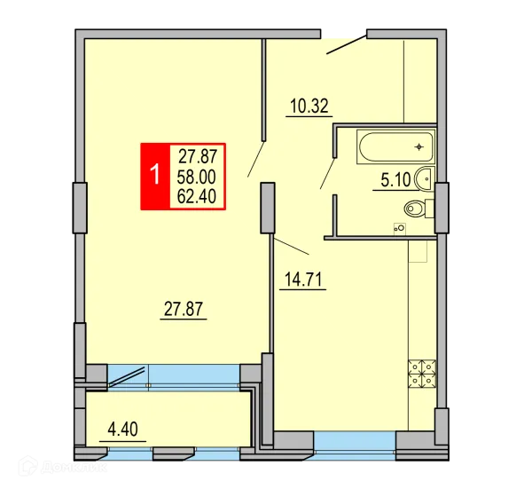 1 комн. квартира в Твери в ипотеку от 43 136 руб/месяц