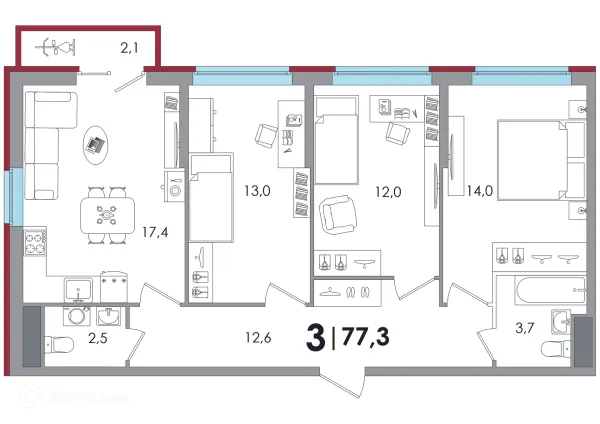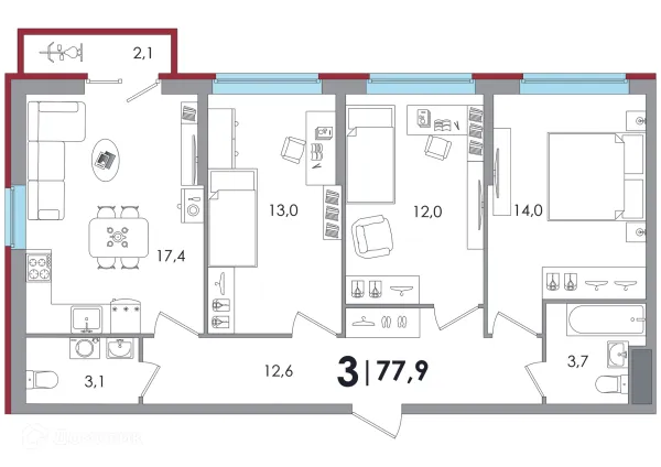 3 комн. квартира в Твери в ипотеку от 66 352 руб/месяц