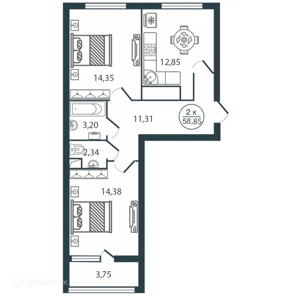 2 комн. квартира в Твери в ипотеку от 65 613 руб/месяц