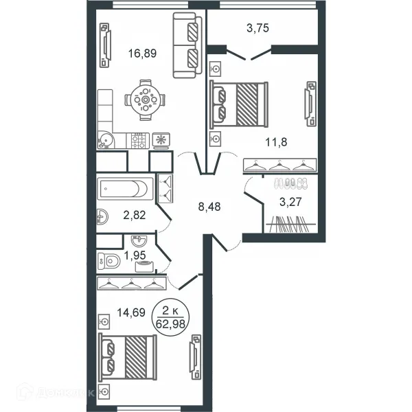 2 комн. квартира в Твери в ипотеку от 69 253 руб/месяц