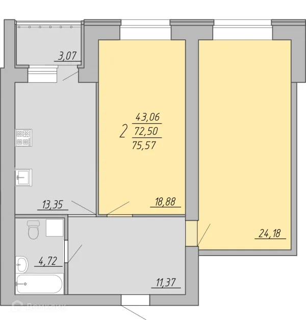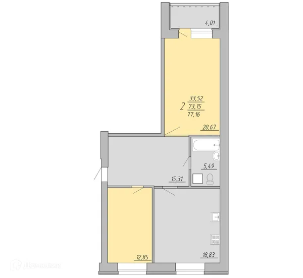 2 комн. квартира в Твери в ипотеку от 49 186 руб/месяц