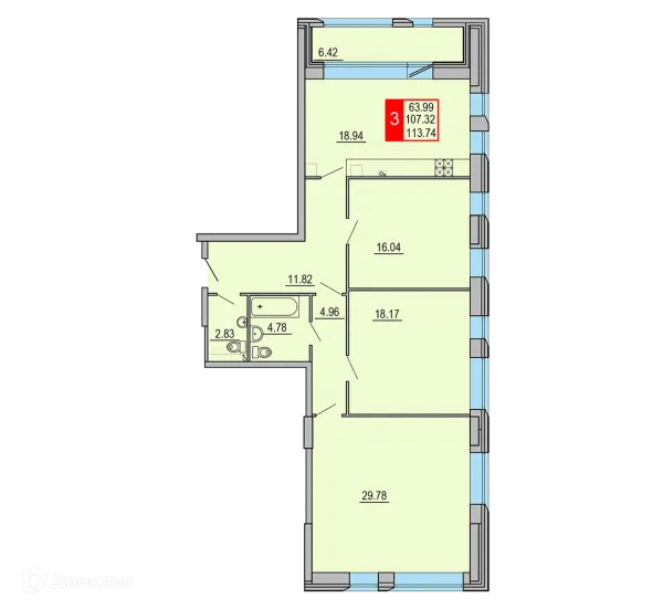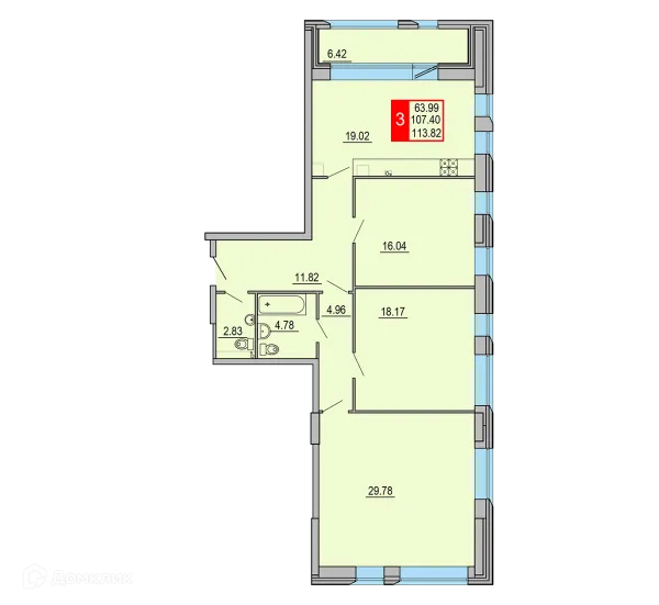 3 комн. квартира в Твери в ипотеку от 74 532 руб/месяц