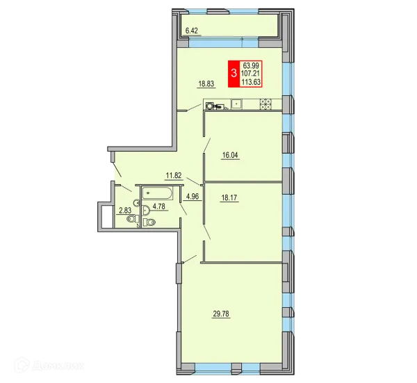 3 комн. квартира в Твери в ипотеку от 74 585 руб/месяц